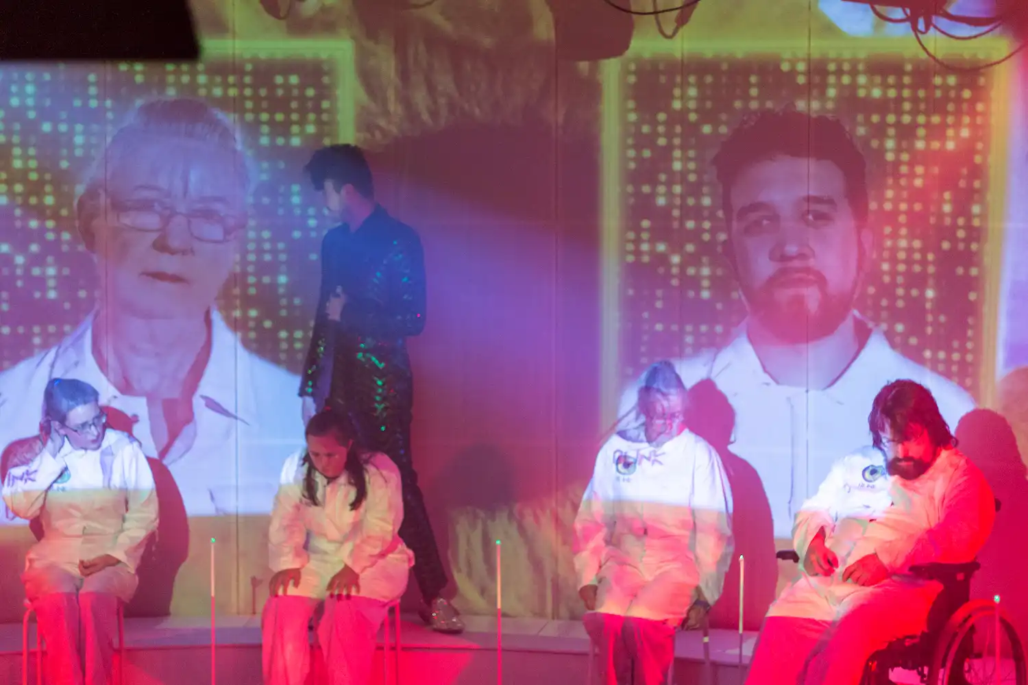 So we bring the personal, the political and the parallels together to make this show for you. Blink is the title of a 2099 game show. We resisted the game show format for a long time, but eventually gave into the idea after deciding that much of our life experiences did indeed feel like playing a game, like a contestant or being played like a pawn. We’ve drawn plenty of parallels between 2019 and 2099; The top 1%, the power of money, pitting the most vulnerable people in our communities against each other, a sense of hopelessness, the speech of ignorance and hate. The characters use language that has been taken directly from the cast’s experience – none of it hasn’t been said before. WARNING: you could (& should) find it offensive.